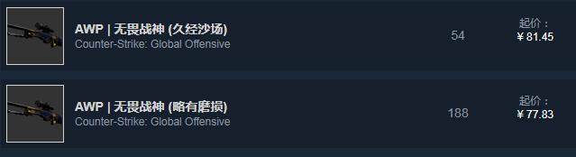 无畏战神在AWP中属于冷门皮肤,论价格比不上蠕虫之神、火卫一,论好看比不上暴怒野兽、巨龙传说。隐秘品质的价格也不过七八十元,由于略磨、久经均有磨损,所以大家任意选择就好。