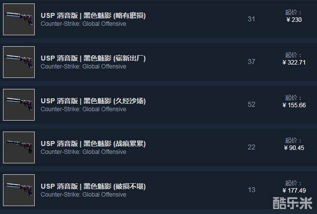 黑色魅影的价格已经属于USP中价格很高的皮肤了,二次元小姐姐设计出众、不太吃磨损、又是CT初始枪,所以备受追捧。推荐低磨损久经和略磨,性价比较高。当然追求顶级磨损的玩家,请开始你们的表演。