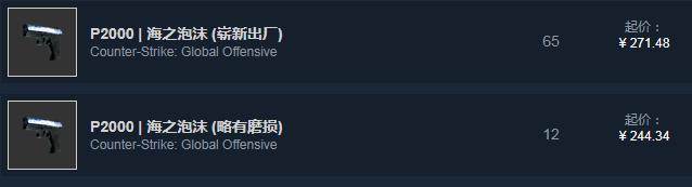 P2000尽管热度不及USP,但海之泡沫的价格却并非USP皮肤可比。当然崭新270元的价格可不是海之泡沫自身原因。因为10把海之泡沫有50%的概率汰换出火蛇,再加上崭新火蛇是0.06-0.07磨损范围。所以低于0.01磨损的崭新海之泡沫(可以汰换出崭新火蛇)更是求之不得,所以不管是从外观、性价比来说,崭新你值得拥有。