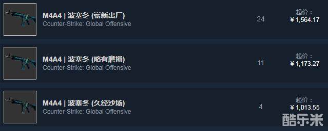 M4A4是CS:GO的主战枪,而波塞冬尽管不及二西莫夫热门,但得益于是只有大行动期间有通行证才有机会掉落的保密级皮肤,再加上波塞冬是美杜莎的合成素材,所以价格非常高。最便宜的也要900多元,略磨和久经基本都用于合成美杜莎,所以价格差不多。