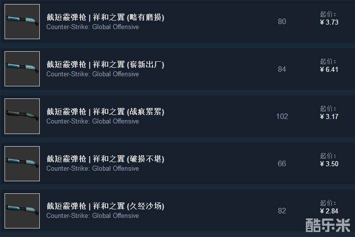 祥和之翼的价格在截短霰弹枪中不算便宜,而崭新价格相当于久经的2倍。所以基于外观和价格,性价比最好的就是略磨了,当然崭新控多花3块钱也没什么。
