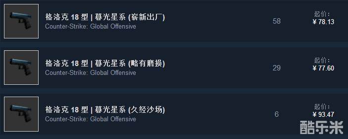 看到图中的价格,相信【皮肤控】的老观众都明白为什么久经的价格最高了。崭新区间0<<0.07,略磨区间0.07<<0.15,久经区间0.15<<0.20,区间最小数量最少,物以稀为贵。然而在GO哥这里并没什么O用,我外貌协会的,外观好价格还便宜当然选崭新。