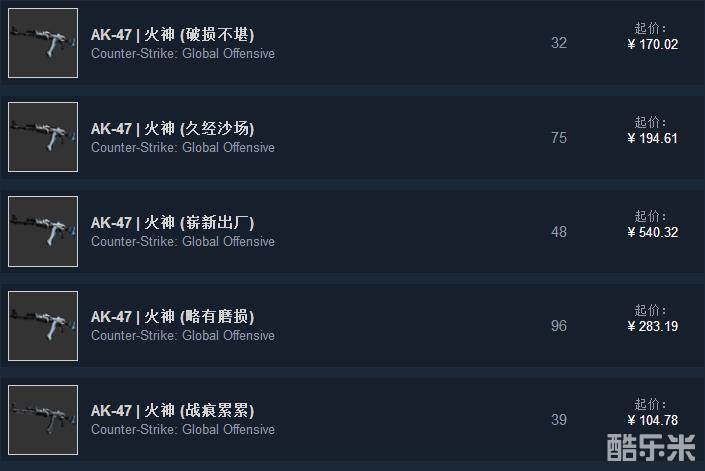 AK是CS:GO里最热门的枪械,而火神是AK中的热门皮肤,加上又是隐秘级品质,所以火神的价格是比较贵的。最便宜的也要100元左右,而由于不同磨损外观分明,所以价格差别巨大。如果预算有限,可以在久经沙场中挑选极限久经皮肤。