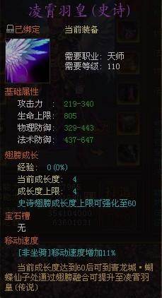 基础属性:翅膀有强大的基础属性,大幅提升角色的攻击、物理防御、法术防御、生命值四项属性