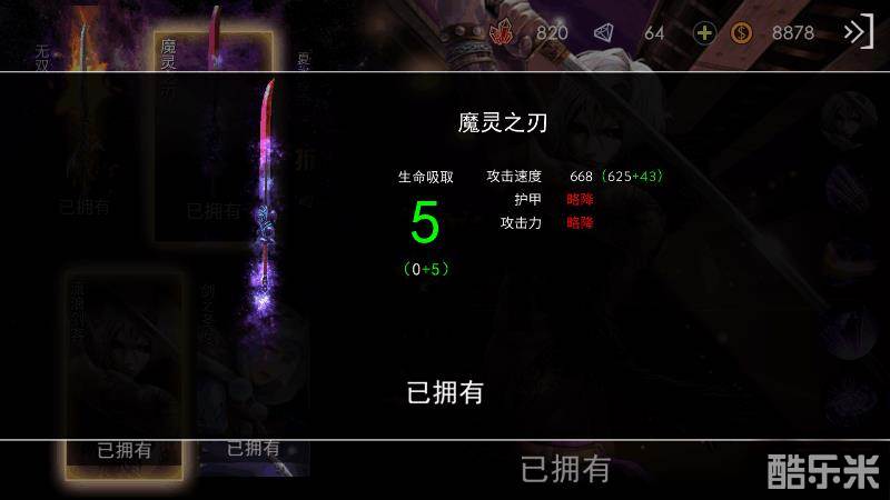 能量越高攻击与攻速越大,最大攻速30%,最大攻击40点。