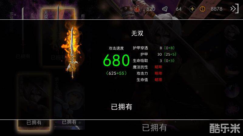 中期顺风出装:急速靴+吸血镰刀+狂战双斧+急速弓+石中剑