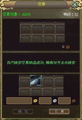 确认交易的物品及交易价格后点击锁定按钮。当点击了锁定按钮后,所放入交易的物品和金钱将不能更改。如果想要更改,必须取消本次交易,重新进行另一次交易。