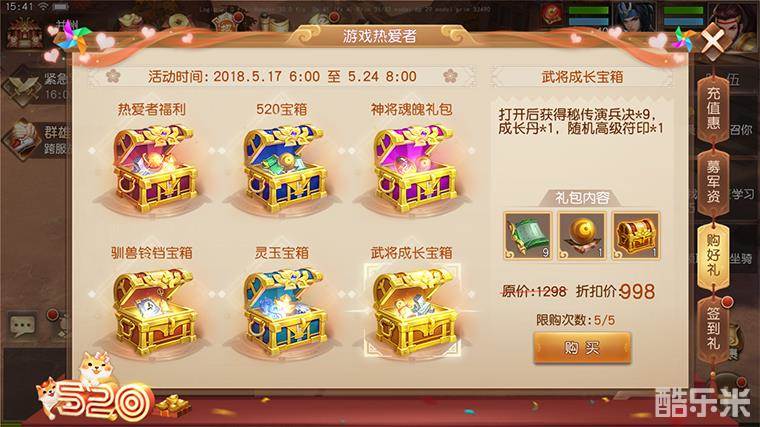 在活动期间,《三国如龙传》还在游戏内为玩家上架了六种全新的礼包,将最实惠的优惠福利献给玩家。这六大礼包包括神将魂魄礼包、驯兽铃铛礼包、灵玉礼包、武将成长礼包、金币礼包、520福袋等,玩家可以根据自己实际所需,选择对应礼包,让自己的实力更上一层楼!