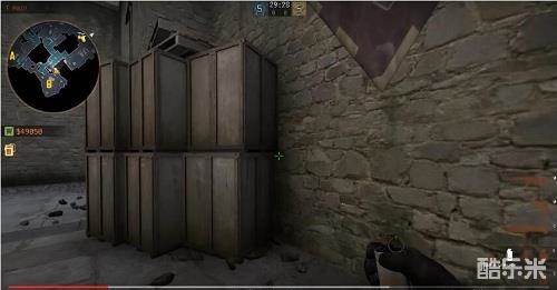 还有一颗在A包点死角的单向烟,敌人进攻A区时我们可以扔这颗烟,站在死角的台阶上敌人很难发现你。