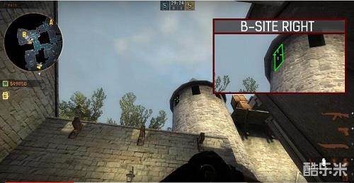 第二颗我们来学一个B门的烟雾,很多时候大家封B门的烟雾时会走下B长廊再封,这样很容易被石头位的敌人打到,这里教大家一个在长廊上就可以封的烟。