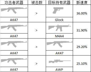 第二个例子B,他发现敌方并且在准备回去时被AK47射中。我方CT手持一把M4所以这会使他需要多一倍的时间回到他原来的位置(因为他的速度在移动的时候会恢复)。或者换句话说,在同样的时间里他只能移动一半的距离。