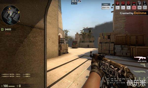 在de_mirage中顶住中路VIP板凳前端