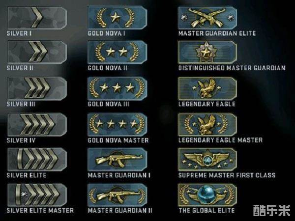 上图就是小编为大家带来的CS:GO段位示意图了,我们可以看到,在CS:GO的段位中,一共是有着18个段位,依次是从最低的白银1到最高的全球精英。大部分的玩家都集中在白银3到黄金4这几个段位之中。相信很多的玩家在加入这个游戏一段时间后在熟悉了枪支武器以及地图以后就会加入竞技匹配中来,大家最大的乐趣肯定在于不断的提升自己的段位。