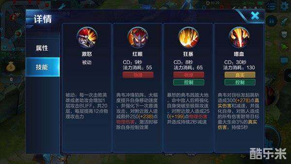 三技能使得典韦可以跳跃一段距离,这使得典韦即使与敌方存在一定距离,也能将三技能作用在敌方身上。前期典韦需要多参团以此来叠加被动,中后期的典韦可以对敌方脆皮输出释放三技能从而先手开团,配合普攻加技能,在敌群中打出高额的输出伤害。