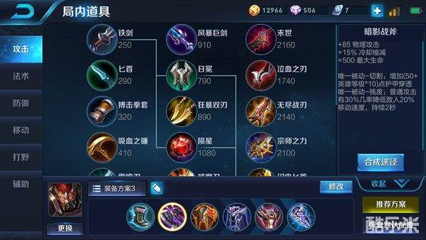 六神装:抵抗之靴、暗影战斧、红莲斗篷、魔女斗篷、反伤刺甲、冰痕之握