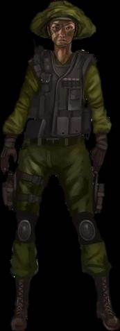 关于IDF角色的设计本来至少有一种女性角色版本,但似乎只是处于概念艺术。就像在图中里看到的一样,女特工不戴头罩,脸上涂有伪装涂料。然而这个想法在游戏设计阶段就被放弃了。