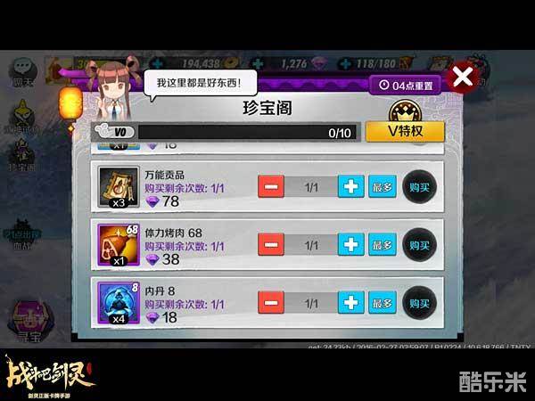 体力用完之后,可以花费50钻石购买两次体力。除此力之外,在前期能够获得体力的,还有珍宝阁的体力烤肉,38钻石可以购买1次,使用后立即获得68体力。平时要多加好友,与好友之间互送体力。每天还有免费体力的领取时间,千万不要错过!
