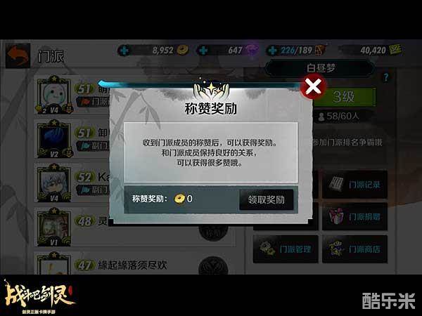 玩家17级后可以创建或者加入一个门派。称赞门派内玩家,可以直接获得一定的体力。用来在这个阶段升级,避免体力的断档。