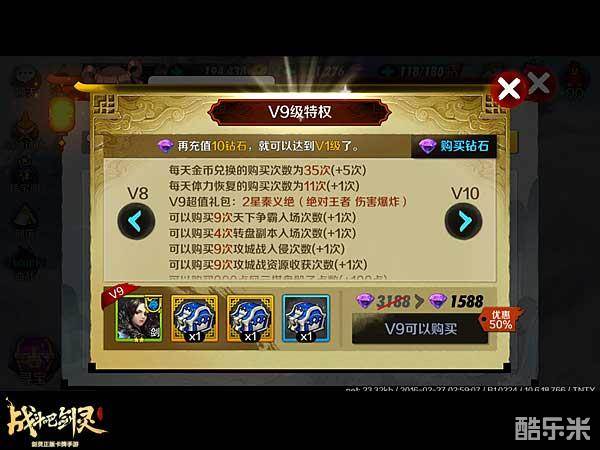 VIP8的特权礼包更是给力,1188钻石可以购买1588钻石和各种材料。钻石如此返还,可以攒下十连抽,获得更多给力卡牌!
