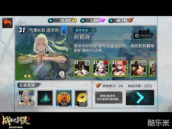 《战斗吧剑灵》到达30级之后,每级升级需要的经验较多,升级速度开始减慢。这个阶段要注意战力的提升,通过卡牌升级强化升星、装备的锻造、宝石的镶嵌等途径来让自己变得更加强大,才能打过后面的副本。