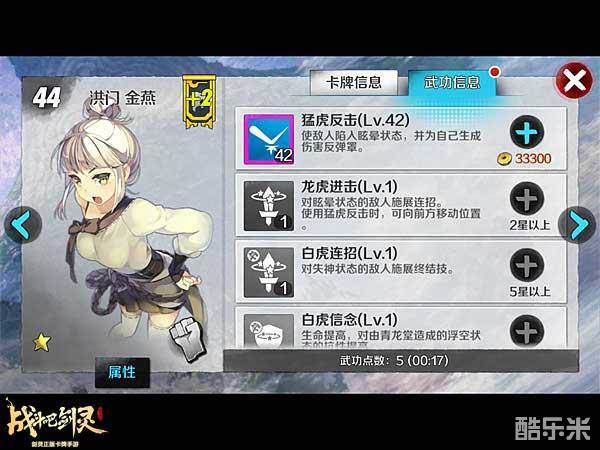 S资质的金燕,武功的强大让其成为玩家后期培养的重点对象。前期获得后就可以主力培养,反弹的技能,使其在一星的时候,也可以作为主力阵容上阵,不必担心其抗压的能力。