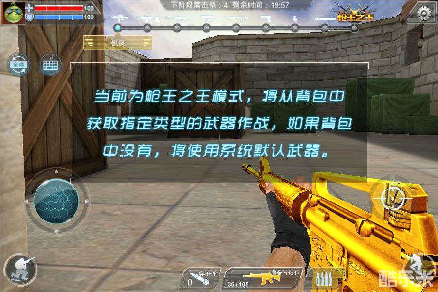 游戏开始时,首先进入步枪战,玩家会使用自己背包里的步枪作战,顺利获得4个人头之后,进入机枪战阶段。