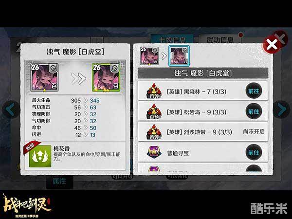 魔影的升星途径是非常多的,三个关卡地图掉落,寻宝、任务中都有碎片。不过这张卡牌不建议过多升星。