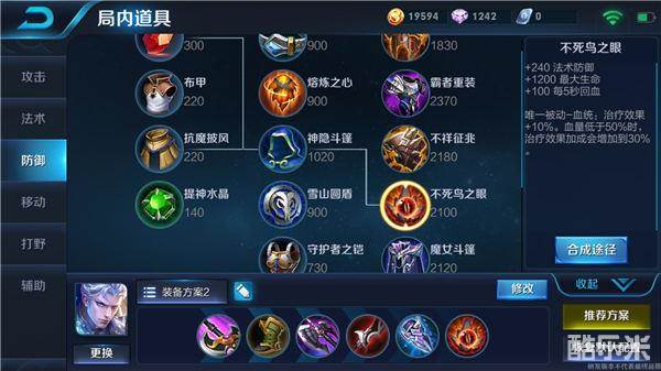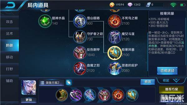 上单位装备推荐:影忍之足+暗影战斧+冰痕之握+反伤刺甲+不死鸟之眼+极寒风暴