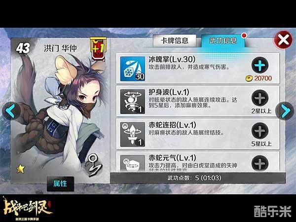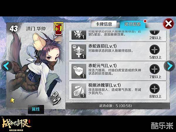 在《战斗吧剑灵》的很多副本中,经常会遇到有释放寒气的敌人,会被控制的十分难受。而自己有机会获得这样武功的卡牌就是A资质的气功师华仲。