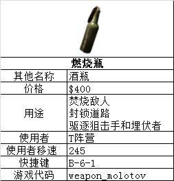 莫洛托夫鸡尾酒是《反恐精英:全球攻势》中特有的一种投掷性爆炸物,由T阵营使用,与之对应的是CT阵营的燃烧弹。