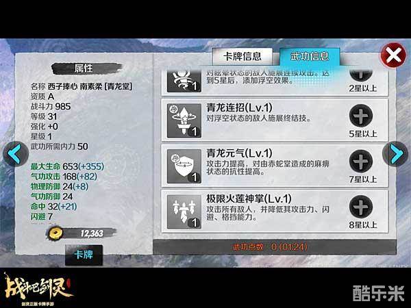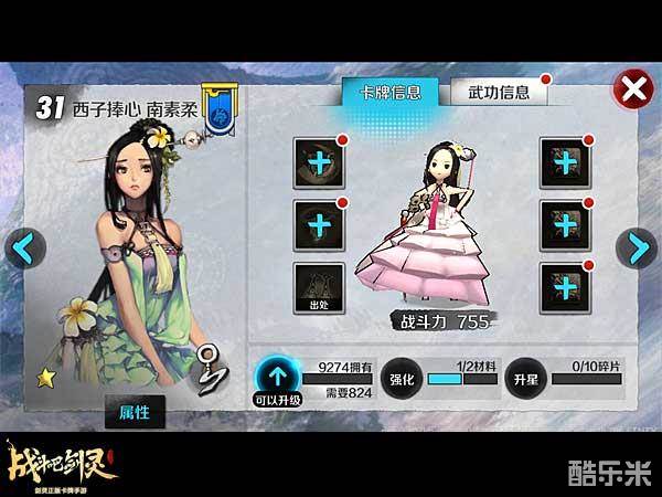 与南素柔有一样美丽的外貌,但是看上去更加的忧郁。技能上相比南素柔,虽然都是群体攻击,但是A资质的西子捧心南素柔,添加了降低敌人攻击力、闪避、格挡能力的减益能力,并在5星后添加浮空效果,显然更胜一筹。