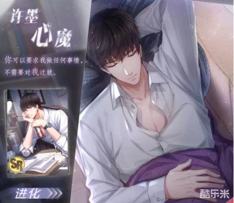 最后编辑于7年前恋与制作人许墨心魔进化材料有哪些?恋与制作人5月18日上新了许墨SR新羁绊心魔,你可以要求我做任何事情,不需要我迁就,相信很多小伙伴都想知道,下面就来看看许墨心魔进化升星材料一览吧。