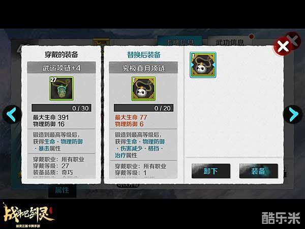 武运项链:最大生命,物理防御,最高等级后获得生命、物理防御、暴击。