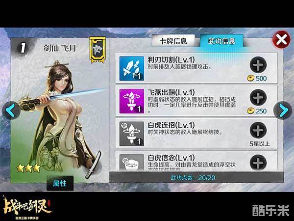 S资质的剑士飞月,是50级攻城战可以直接获得的给力卡牌,获得即为三星。玩家只要快速升级,都可以感受到这位剑仙的强大威力。