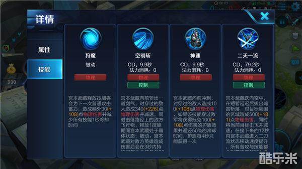 宫本武藏的使用难度不大,通过几次使用之后,技能的释放肯定会越来越精准的。宫本武藏对线能力极强,非常适合用来上分。相信大家在体会过之后,都会爱上这个帅气的大叔!