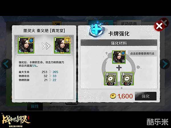 作为剑士,墨灵火秦义绝强化需要用到的是绿色的强筋刚法。用到这个材料的卡牌数量较多,但是S资质的墨灵火秦义绝,毫无疑问要主力培养,优先强化。