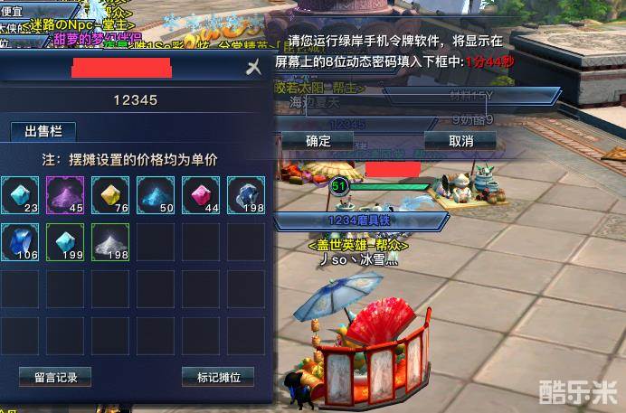 1、登陆游戏后,首次进行交易操作需要输入手机APP安全令牌中的动态密码解锁后,才可以进行购买操作。