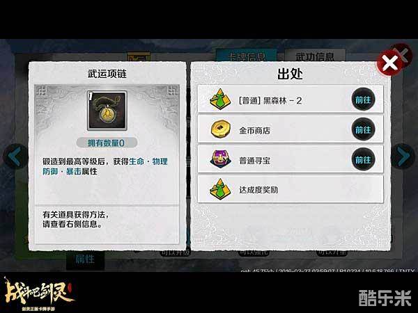 武运项链:提供最大生命、物理防御属性加成,锻造到最高等级后,获得生命、物理防御、暴击属性;