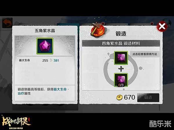 紫水晶:增加最大生命值,锻造到最高等级后增加治疗属性;