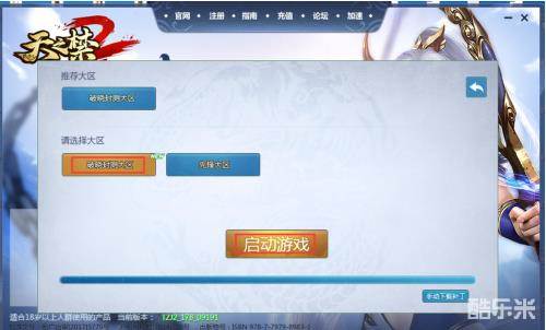 1、安装完成后双击桌面快捷方式开启客户端,点击“进入游戏”选择要进行游戏的大区,点击“启动游戏”即可进入选择服务器界面。