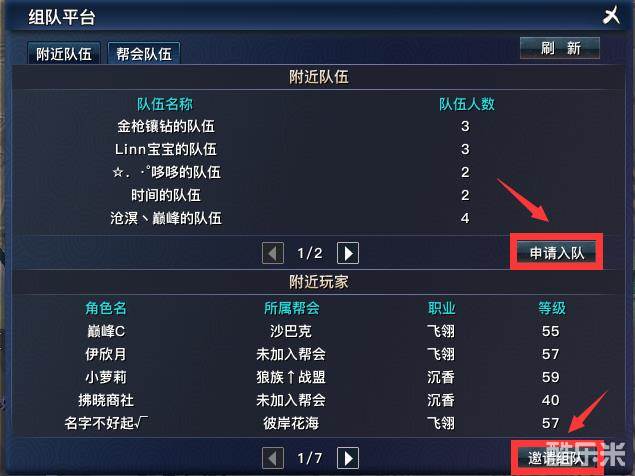比起疯狂的提升自我战力来单刷副本而言,找到一群志趣相投的小伙伴一起在欢声笑语中靠配合打通副本是更加让人愉悦的选择,在游戏内点击“T”键就可以看到附近的玩家和队伍了,点击“申请入队”和“邀请组队”就能和小伙伴一起愉快的玩耍了。