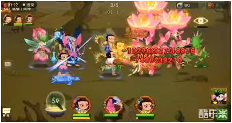 第5小关:进来后2娃开门就放技能。小金刚的技能给队友回复治疗。五娃此时释放技能再用花仙杖吸能量,等待火莲灯CD好了之后立刻也释放!荒沙怪要准备放技能时,红鸾用技能打断,然后秒杀掉荒沙怪。就可以顺利通过了。