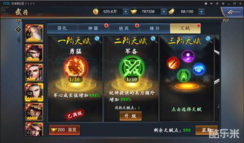 虎符每个等级对应5个符文,每次精炼激活一个符文,并且获得该符文对应的属性,所有符文激活后,即可提升一个等级,提升等级后,需要再次激活下一个虎符对应的5个符文,才能进行升级。在虎符提升到一定等级之后,就可以激活虎符特技孔,大家可以根据自己的需要装备合适的特技,增强武将的属性。
