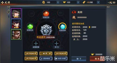 在新版本中,虎符系统将正式登场。每个武将都有一个虎符装备位,可以镶嵌虎符或卸下虎符,虎符可以给装备者带来属性加成,随着虎符等级提升,还可以解锁虎符特技,镶嵌不同的特技可以提升不同属性的值。