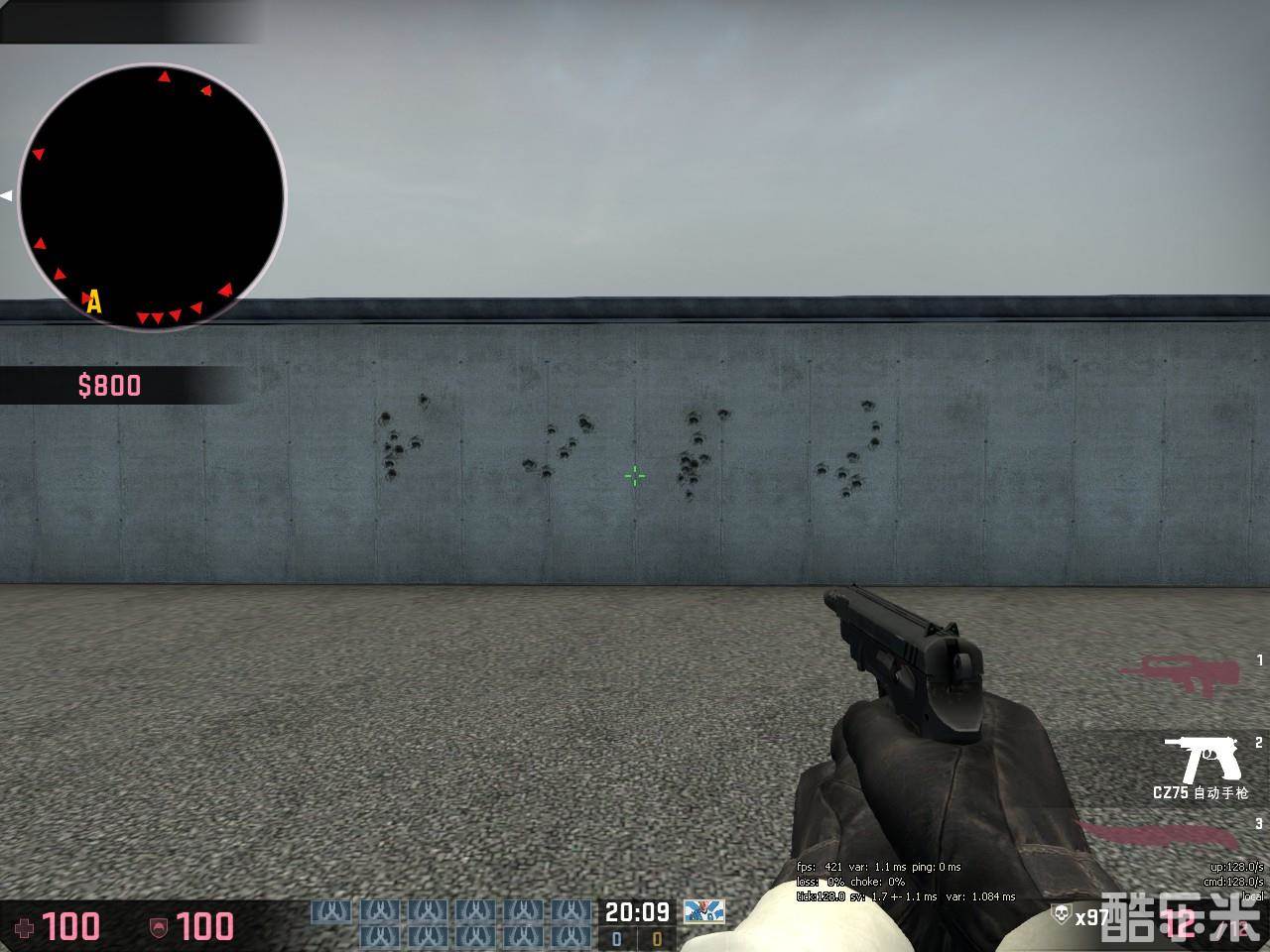 CZ75弹道图 其次大家需要注意的地方就是CZ75的弹夹量。CZ75只有很少的24发子弹,而且切枪的时间很长,基本在正常的遭遇战中如果不能一击制敌就很难有所作为了。所以小编在这里给大家提供两个小建议,在我方要打ECO局时,如果自己起了CZ75这把手枪时,如何发挥自己这把枪的优势。 1.尽量卡在门口路口这些可以与对方进行近距离交火的位置,此时可以将这把武器的优势最大化,要知道能在ECO局击杀掉对方一到两名人员已经是非常大的收获了,也就是我们口中常说的打击对面的经济,这样即使本局不能成功翻盘也可以在下一局长枪局中缩小与对方的经济差距。 2.可以选择自己配一颗闪光主动进攻。此时如果闪光到位的话可以拉出去进攻敌人,很大概率会有人头入账,甚至可以击杀多人。