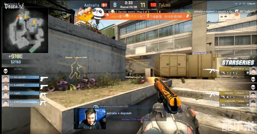 TYLOO队员在死亡游乐园由下水道进攻工地时用CZ75成功击杀一名对方人员 之后为大家分析一下,除了在ECO局中可以选择这把枪,还可以在哪些情况下使用。首先在正常的长枪局中会为自己配备手枪的就是队伍中的狙击手了,因为有时候会出现狙击到对方脚的时候,对方此时血量都是个位数,而肯定不会给自己开下一枪的机会。所以此时的第一选择就是切出自己的手枪进行攻击。再就是由于狙击手的视野限制,经常会由于队友的疏忽造成被敌方绕后攻击,而此时我们可以听见对方的脚步但是枪口不一定转回来,此时最合理的选择只有掏出自己的手枪来进行对抗。所以我们经常会看到职业战队中的狙击手配备一把CZ75作为自己的第二武器。