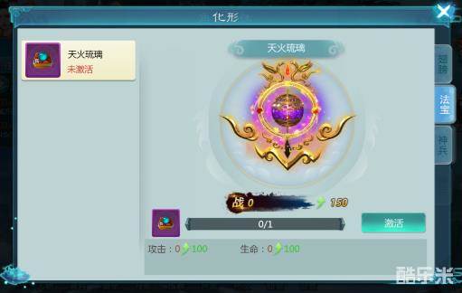 点击幻形可以进入该界面,通过收集法宝激活道具就能获得新的法宝了。