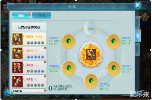 在《仙境情缘》中,宝石分为1-20一共二十个级别,分为红宝石和蓝宝石两种类别。红色代表杀戮,镶嵌在装备上能让你的进攻更上一层楼,红宝石主要用于镶嵌武器及4仙器:项链、香囊、戒指、护符;蓝色代表平和,其附带的防御属性让你无懈可击,蓝宝石主要用于镶嵌盔、腿、甲、腕、靴等五个部位。