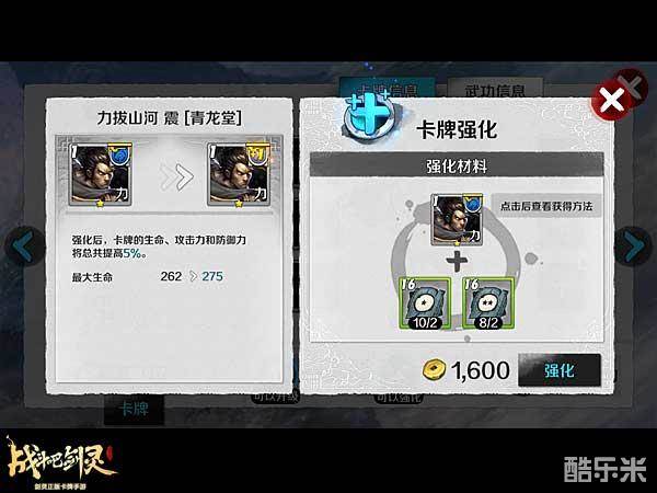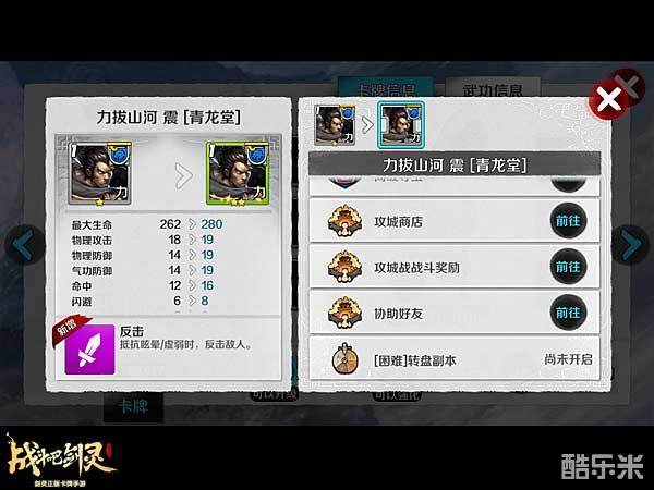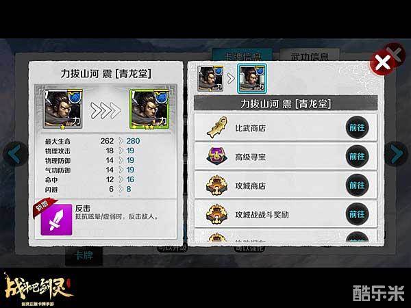 继大老婆明月后,玩家可以陆续接触到的A级力士,就是力拔山河 震了。比武商店前期可以兑换到2个碎片解锁该卡牌。运气好的玩家能够在高级寻宝中获得。其余的就要等60级后的攻城战和困难模式的转盘副本了。