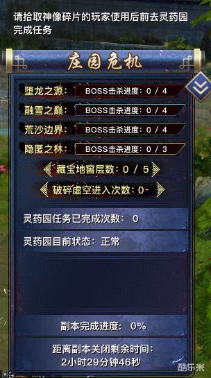 初次进入庄园危机副本,会有引导任务,引导依次进入每个区域地图。其它还有多种支线任务,需要击杀特定的怪物和特定的boss,才能完成任务。